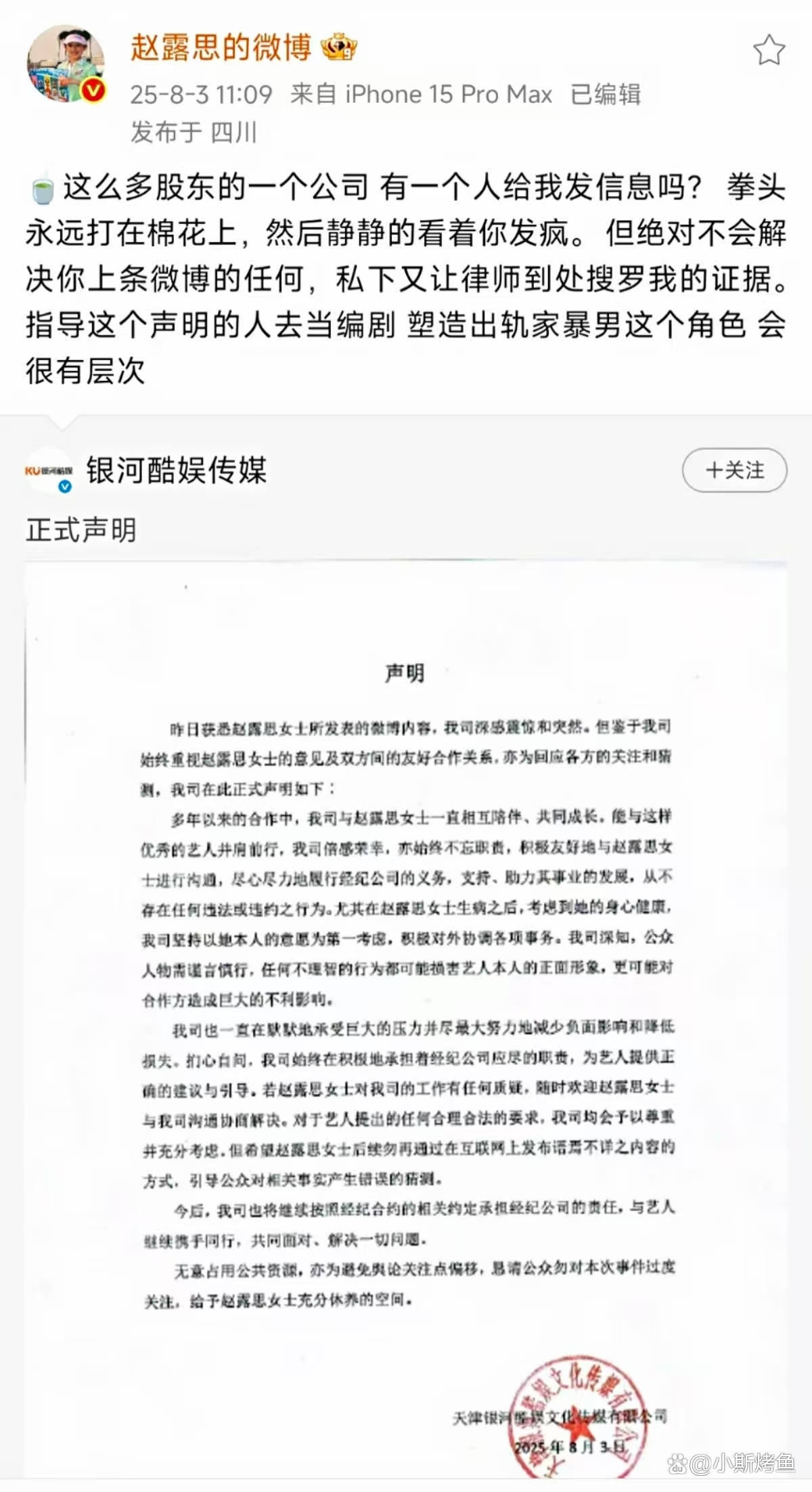 现在全网都在吵她是不是“忘恩负义”。有人翻出她刚签约时的采访,说公司给了她“第二次生命”。可别忘了,是她用十年青春把濒临破产的公司拉回正轨,是她拖着病体拍的戏让股东们买了豪宅。这场战争里没有赢家,只有资本游戏里被消耗的青春和健康。当赵露思说出“钱没在你兜里,也没在我兜里”时,或许我们都该想想:那些藏在热搜背后的“星梦”,到底是谁的美梦,谁的牢笼?