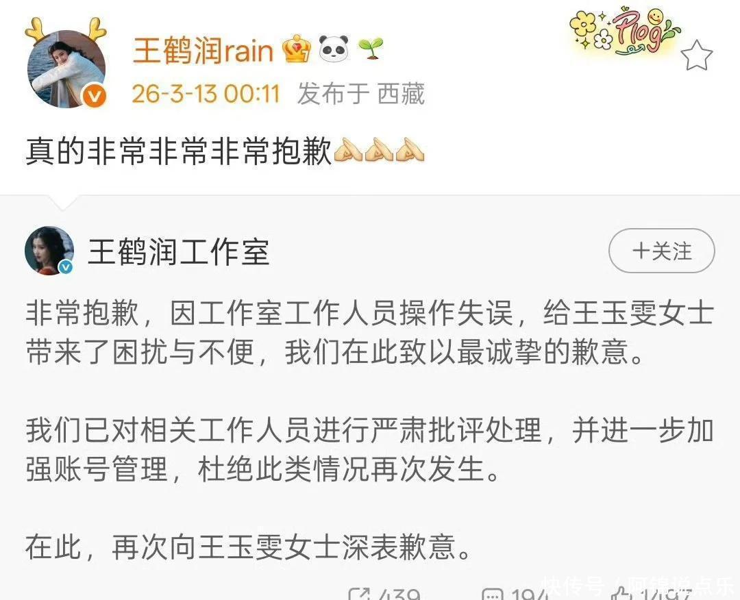 按理说,娱乐圈大家低头不见抬头见,就算私下有看法,谁会用大号这么直白地怼同行啊?这不科学嘛。消息一出,#王鹤润吐槽王玉雯#的话题光速冲顶,网友们一边心疼王玉雯平白遭罪,一边也在疯狂质疑。紧接着,工作室赶紧出来救火,说是工作人员操作失误,还甩出了“铁证”:王鹤润人明明在西藏拍综艺,评论 IP 却显示在上海,两地相隔千里,时间空间都对不上。听着挺像那么回事,可大伙儿心里都犯嘀咕,这理由是不是太万能了点?